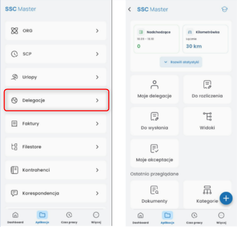 Aplikacja SSC Master DELEGACJE Mobile jest przeznaczona do elektronicznego obiegu, zarządzania oraz rozliczania dokumentów związanych z delegacjami. Pozwala generować wnioski i rozliczenia wyjazdów zwykłych oraz zbiorowych (przeznaczone np. dla przedstawicieli handlowych). Dzięki odpowiednio zaprojektowanym formularzom, usprawnia proces wnioskowania raportowania oraz rozliczania krajowych i zagranicznych wyjazdów służbowych.