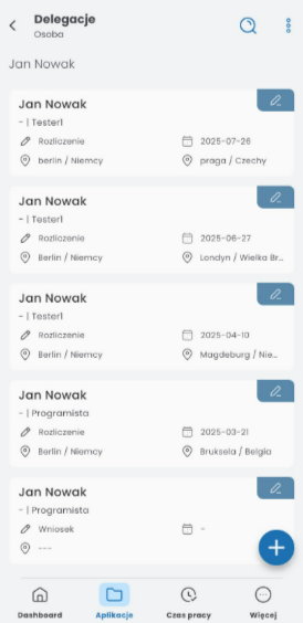 Aby włączyć widok modułu Delegacje, uruchom go z listy aplikacji.