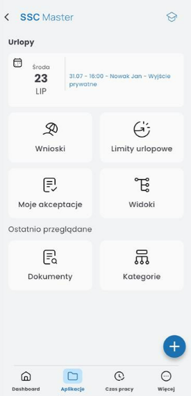 Urlopy Mobile to moduł służący do podglądu, akceptacji i tworzenia wniosków urlopowych. Mini-dashboard składa się z kafelków: