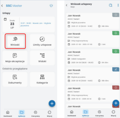 Wnioski – skrót do dokumentów wniosków urlopowych