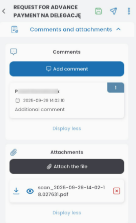 In the Approval Path tab, select the decision-maker (with button EDIT STAGE) and send the document for approval by clicking the paper plane icon.