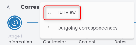 The new document will open in the wizard view tab — INFORMATION. Press the menu button (three dots in the upper right corner) and select FULL VIEW.