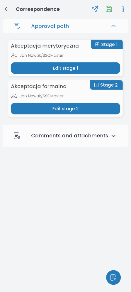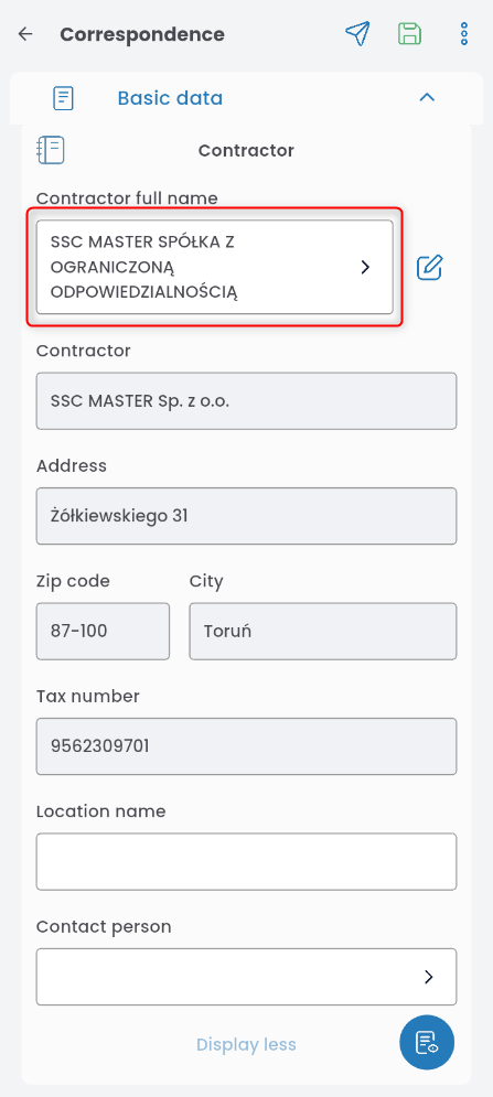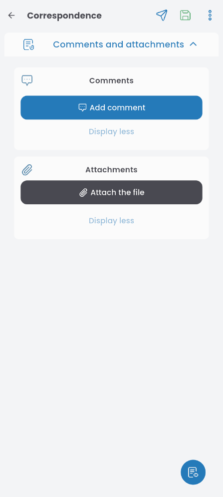 In the CORRESPONDENCE app, press the “+” button and select CORRESPONDENCE.