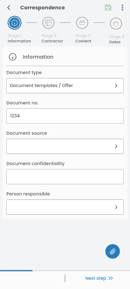 In the CORRESPONDENCE app, press the “+” button and select CORRESPONDENCE TEMPLATE.