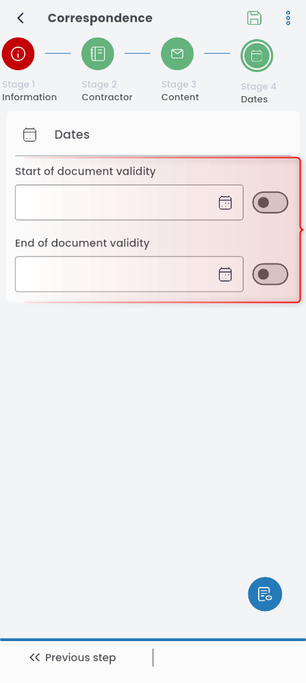 In this tab, set the dates: document effective start and end dates.
