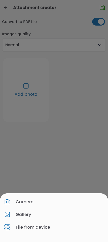 In this tab, you can add an invoice description, as well as add an attachment, preview it (by clicking the eye icon), delete it (using the red “x” icon), and download it (using the downward arrow icon).