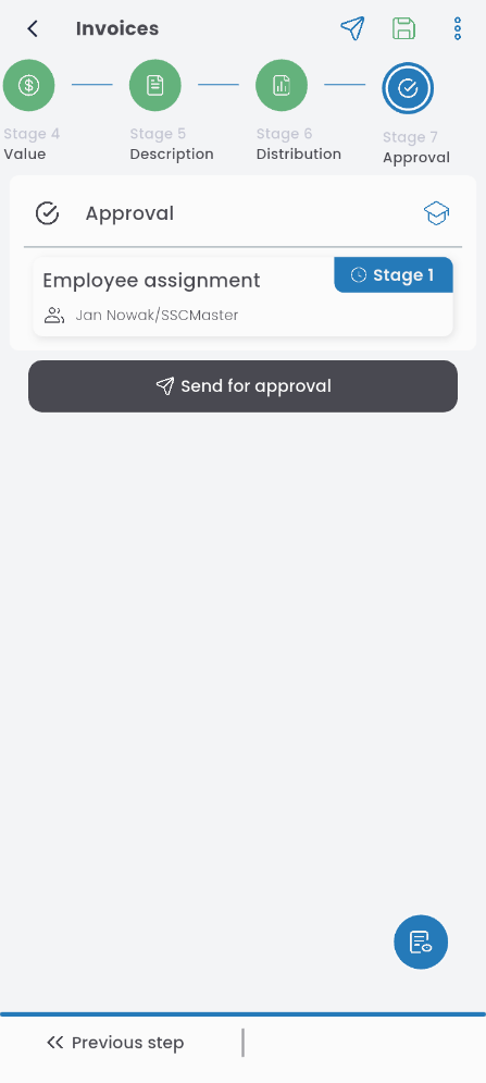 Depending on the configuration, a given document type may require approval. Press the approval level and select the decision-maker from the list. Note: the person may be filled in automatically and cannot be changed.