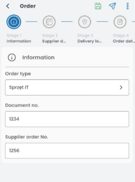 In the INFORMATION tab, fill in the document number and the supplier’s order number.