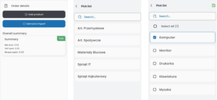 You can also import data from an existing requisition document. Save the order document, click DEMAND IMPORT, and select a requisition document from the list.