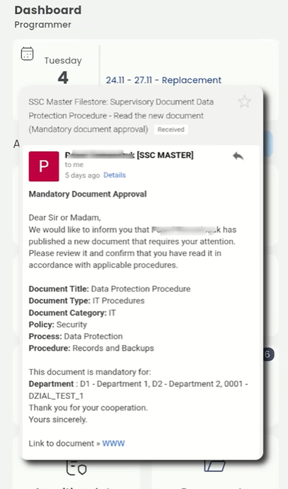 Once a new supervisory document to which you are assigned is published, you will receive an email notification.