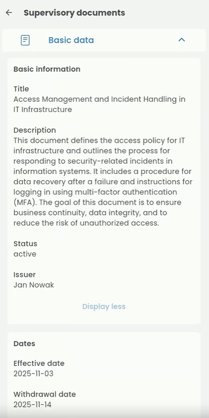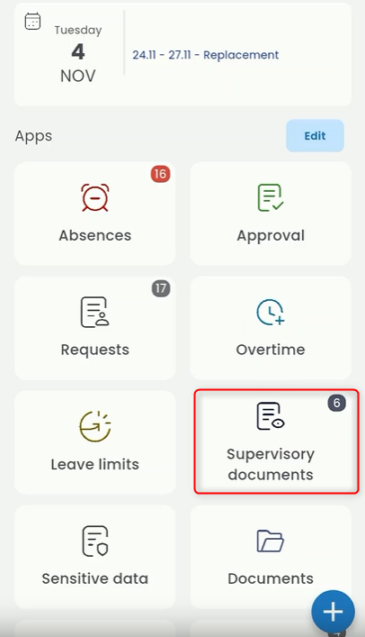 or in the dashboard, under the SUPERVISORY DOCUMENTS tab.