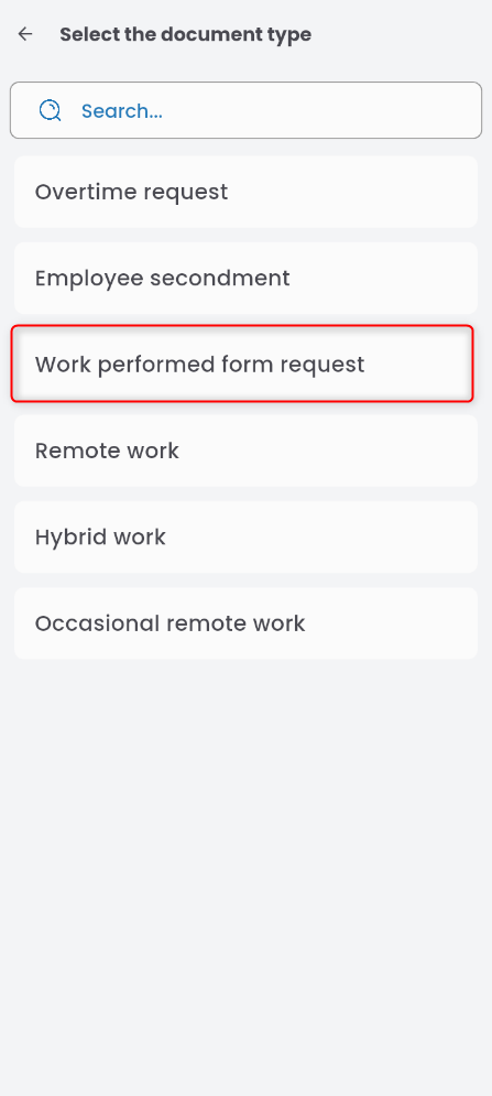 From the list, choose REQUEST FOR WORK PERFORMED FORM.