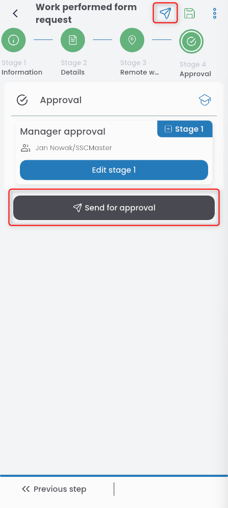 Once completed, send the request for approval.