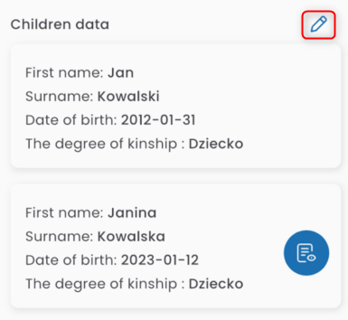 In the CHILDREN DATA table, the children selected earlier will be displayed. You can edit the list by clicking on he pen icon