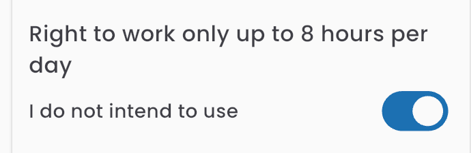 The toggle is used to indicate whether the applicant intends to use the entitlements (by default, the intention to use them is selected), as well as to display the entitlements that apply.